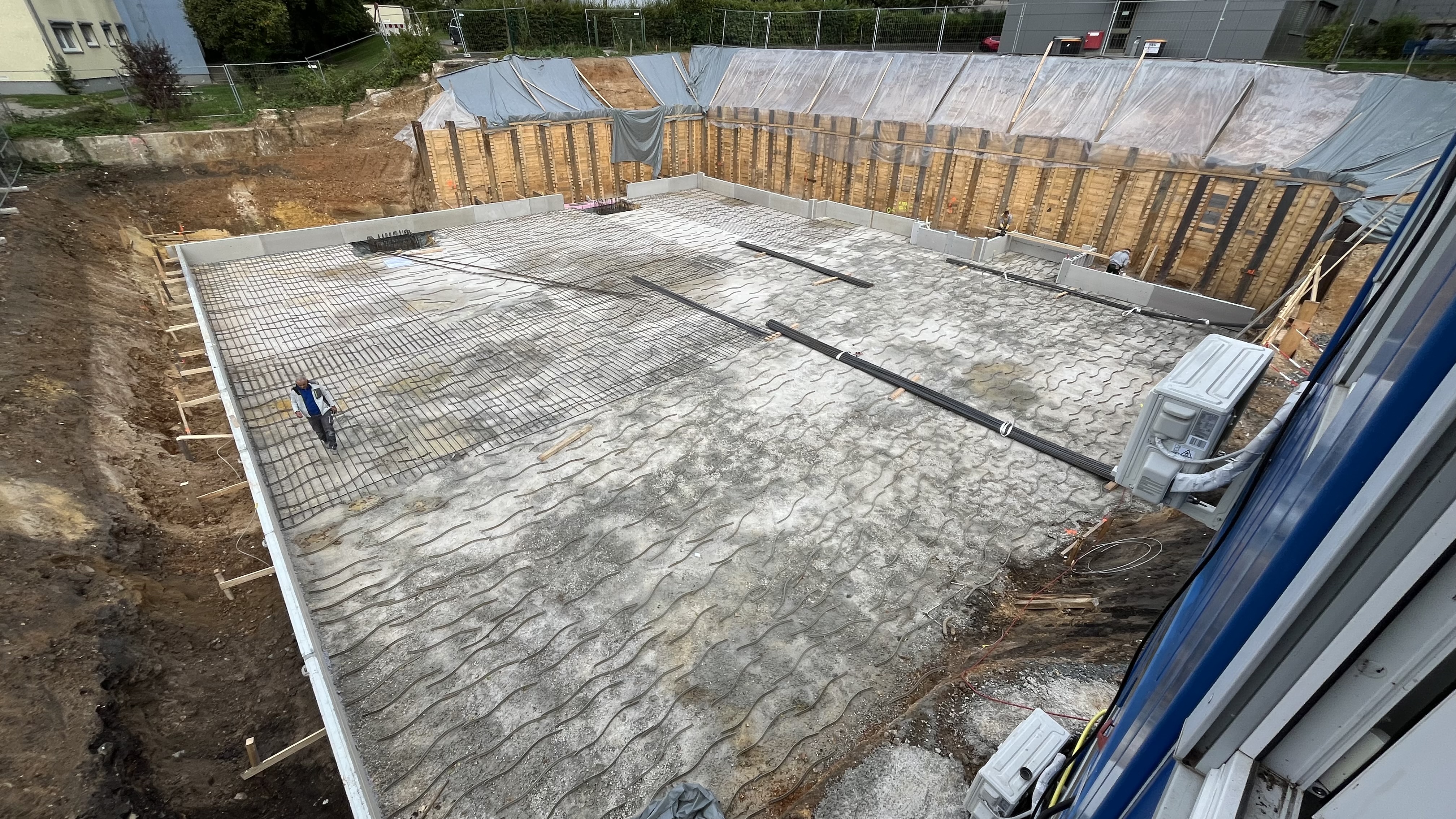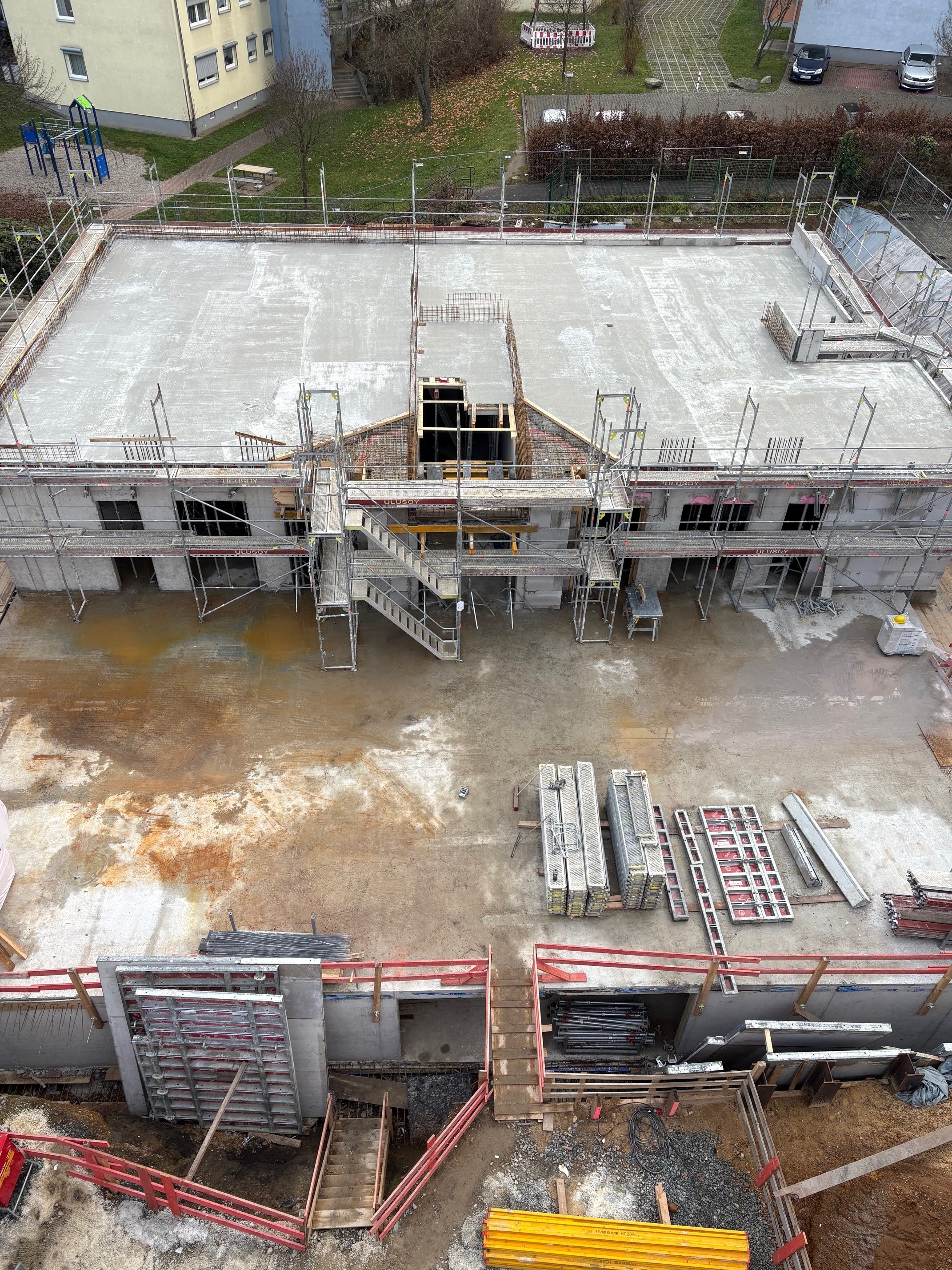 Die Bauarbeiten schreiten auf dem kompakten Baufeld trotz herausfordernder Bedingungen kontinuierlich voran. Mit Fertigstellung des ersten Abschnitts werden die Rohbauarbeiten nahtlos fortgesetzt. Im Anschluss ist die Errichtung einer Moschee mit Kuppel und Minarett als spirituelles und architektonisches Herzstück der Anlage geplant.