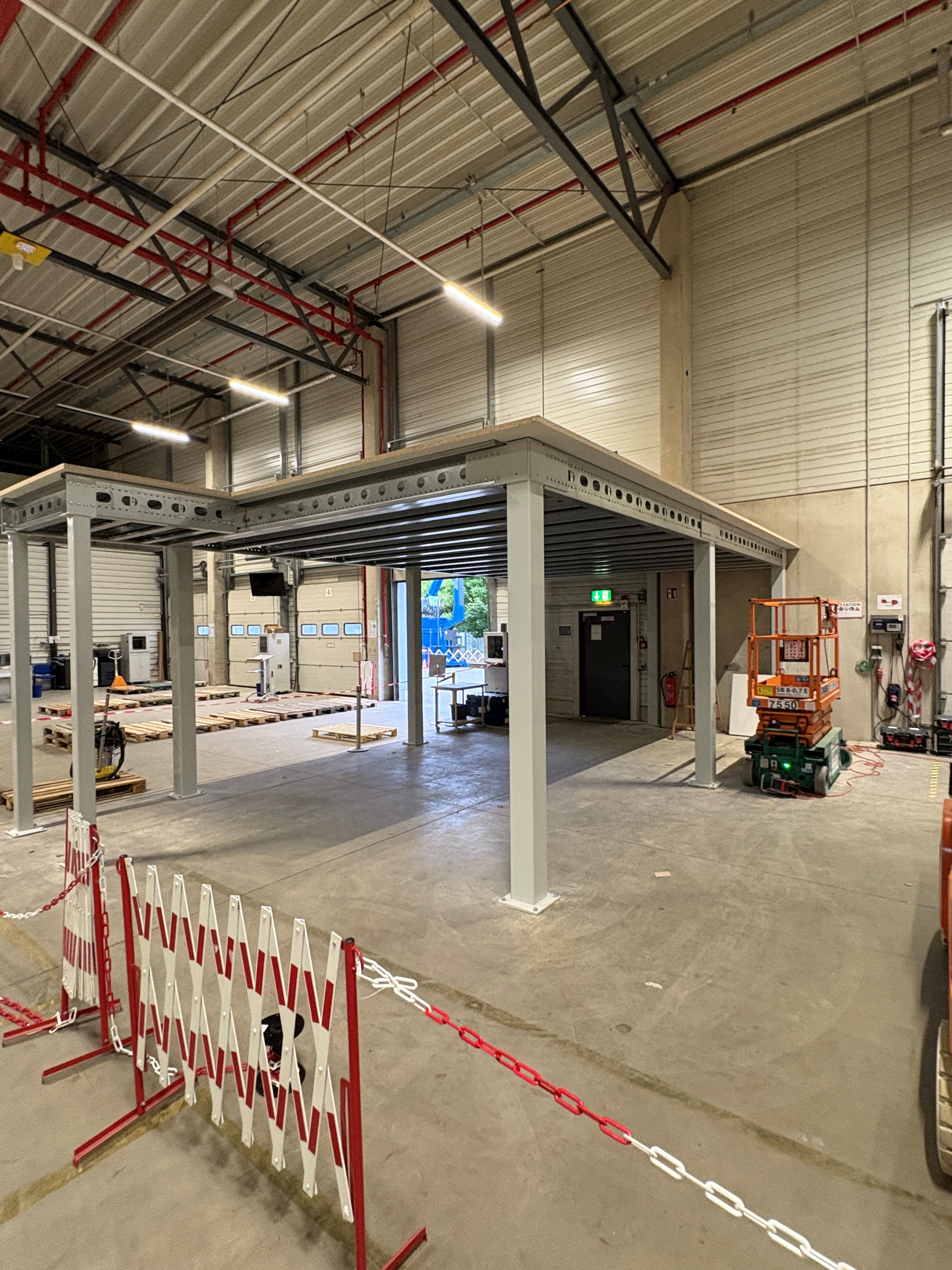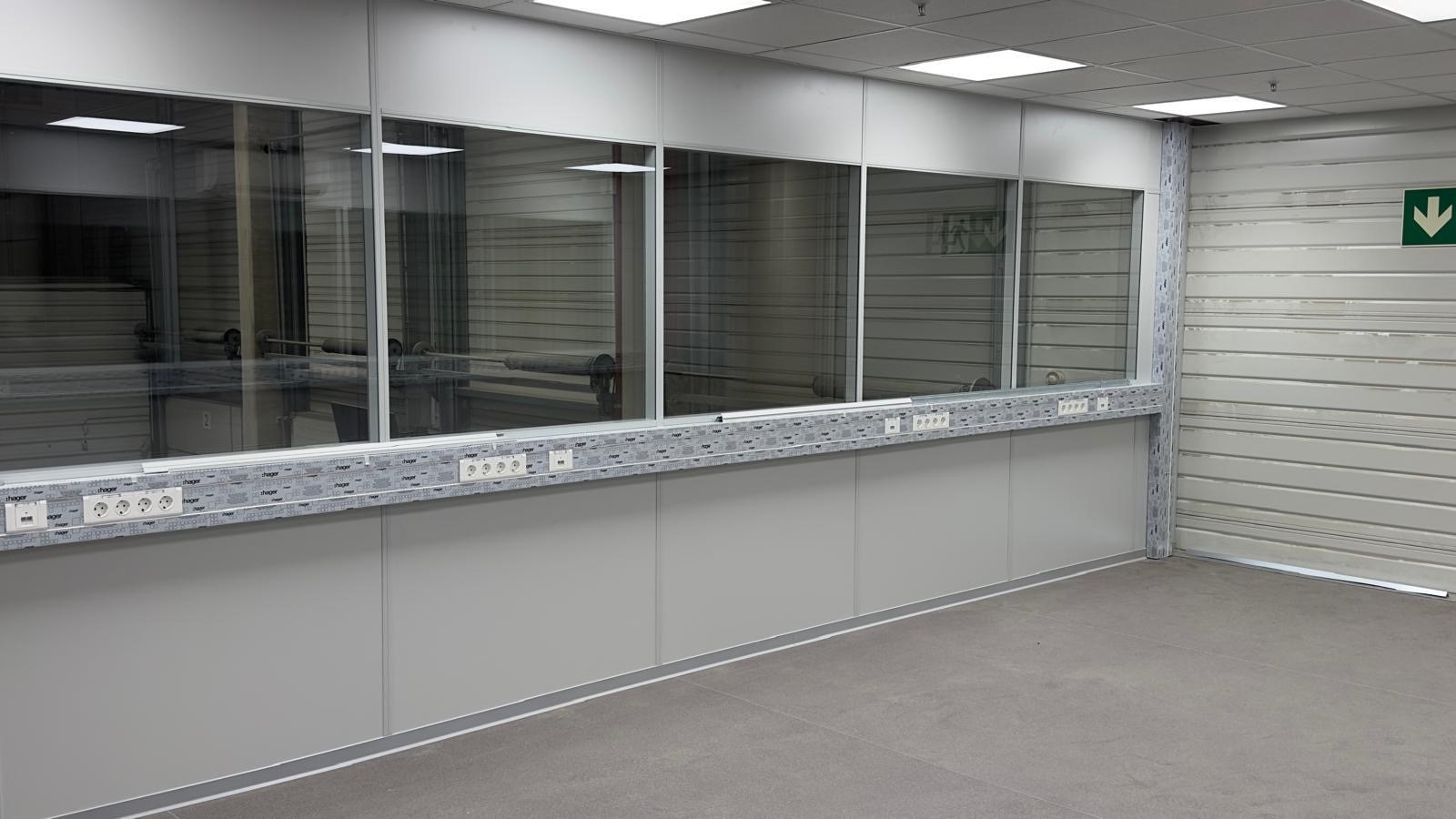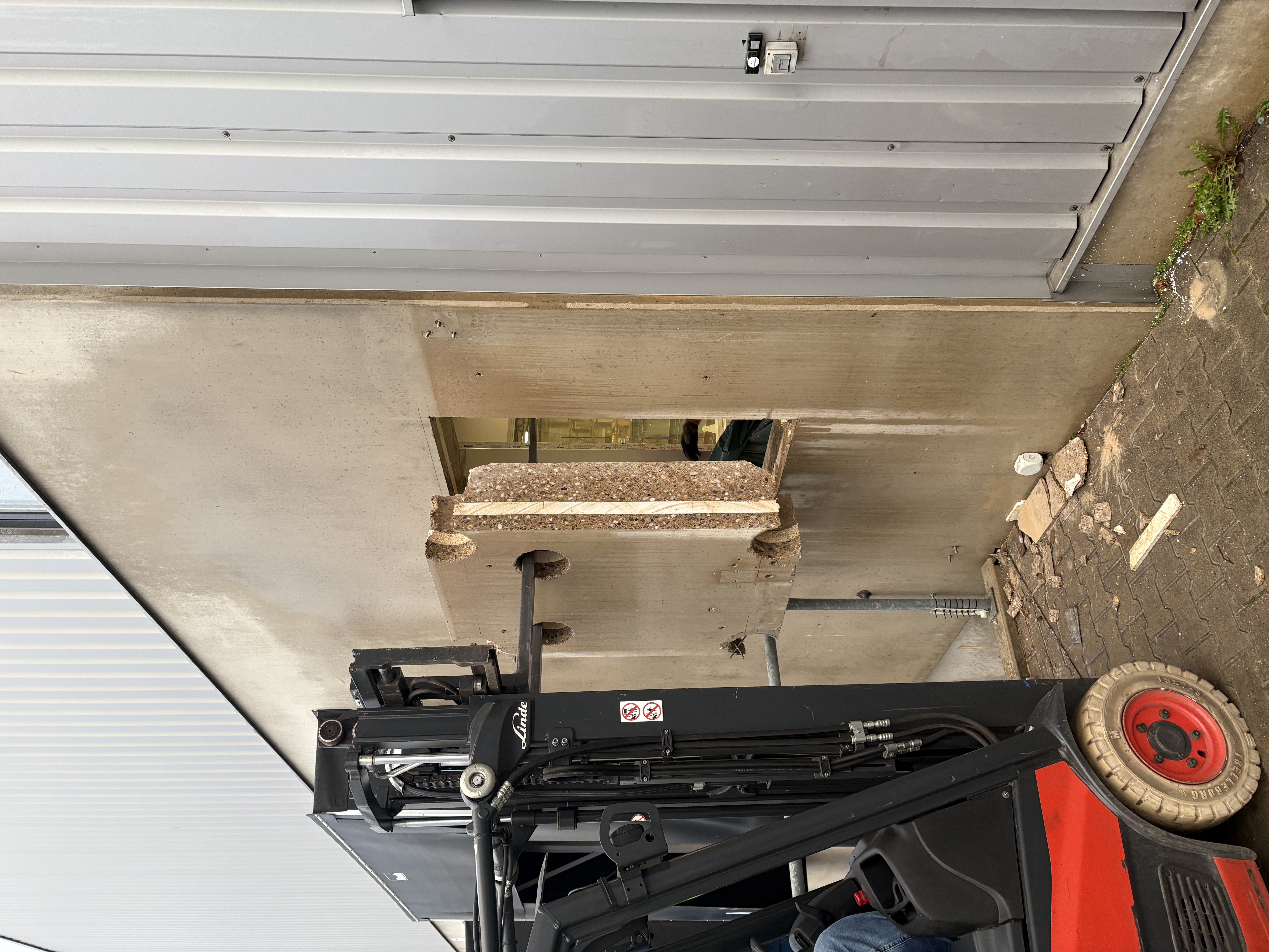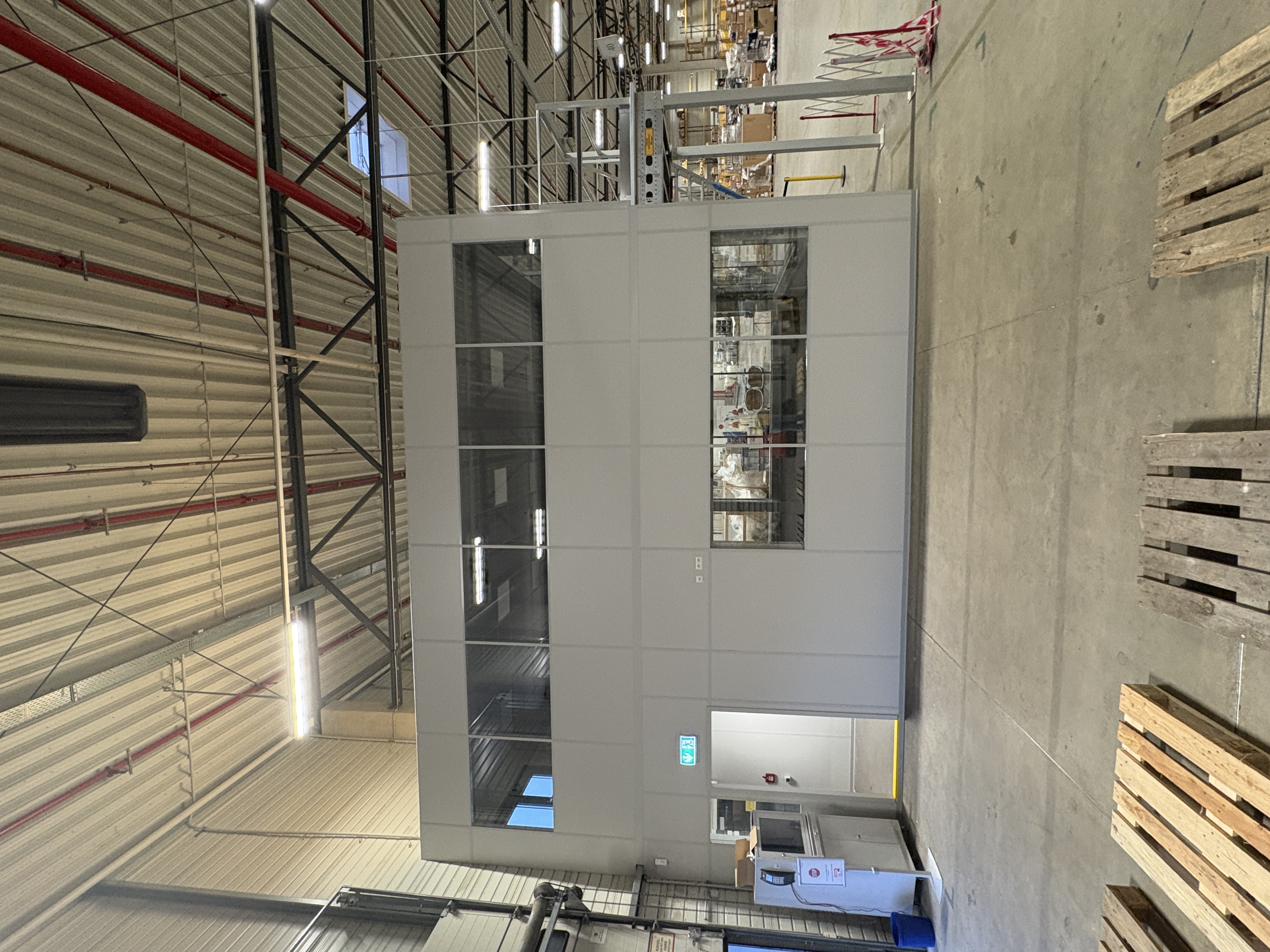 Zusätzlich wurde die bestehende Schleuse zurückgebaut und neue Fenster integriert, wodurch die Raumstruktur optimiert und für mehr Tageslicht gesorgt wurde. Technische Einrichtungen wie die Installation einer Energiesäule, die Erweiterung der Sprinkleranlage, die Versetzung der Waage, die Erneuerung der Elektroinstallation und der Einbau eines neuen Sektionaltores gewährleisten einen sicheren und effizienten Betrieb.
